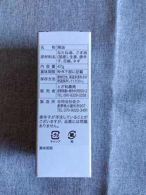 辛油(47g入) ~あらゆる料理に旨辛1滴~ 【1万円以上送料無料】 販売価格 1,430円(税込み) 会員価格 1,430円(税込み) 通常価格 1,430円(税込み) 在庫 10 商品コード 50 JANコード 4595317700027 47g入 1本 47g入 2本 47g入 3本 47g入 4本 47g入 5本 47g入 6本 47g入 7本 47g入 8本 47g入 9本 47g入 10本 数量 - + カートに入れる 入荷通知メールを希望する 個別送料 720円 ツイートする シェアする